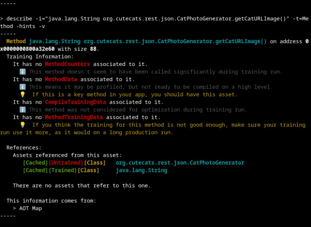 But I wanted to focus specifically on Part 3, because while the first two installments provide necessary background, Part 3 is where things get genuinely practical - and arguably where the real “engineering” starts. It walks you through diagnosing an AOT cache on a real, non-trivial Quarkus application with a dedicated tooling that lets you understand why you’re getting the performance you’re getting (or not getting).