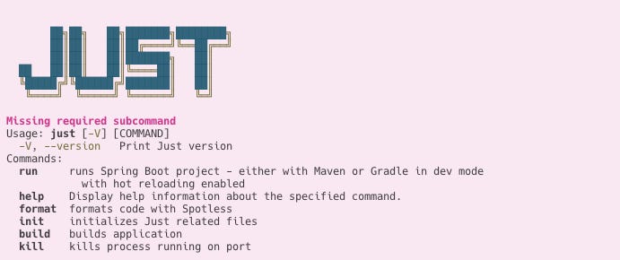 A week ago, I described how much I appreciate Quarkus for its emphasis on Developer Experience and Dev Mode, with which it strongly differentiates itself from competitors. just in my eyes is an attempt to create a Spring equivalent of Quarkus' Dev Server. The project provides such functionalities as Live Reload, a code formatter, and the creation of resulting project binaries in various formats like Docker image or GraalVM - and everything with sensible defaults. The whole thing is expected to become a kind of Swiss Army Knife, solving developers' everyday problems.