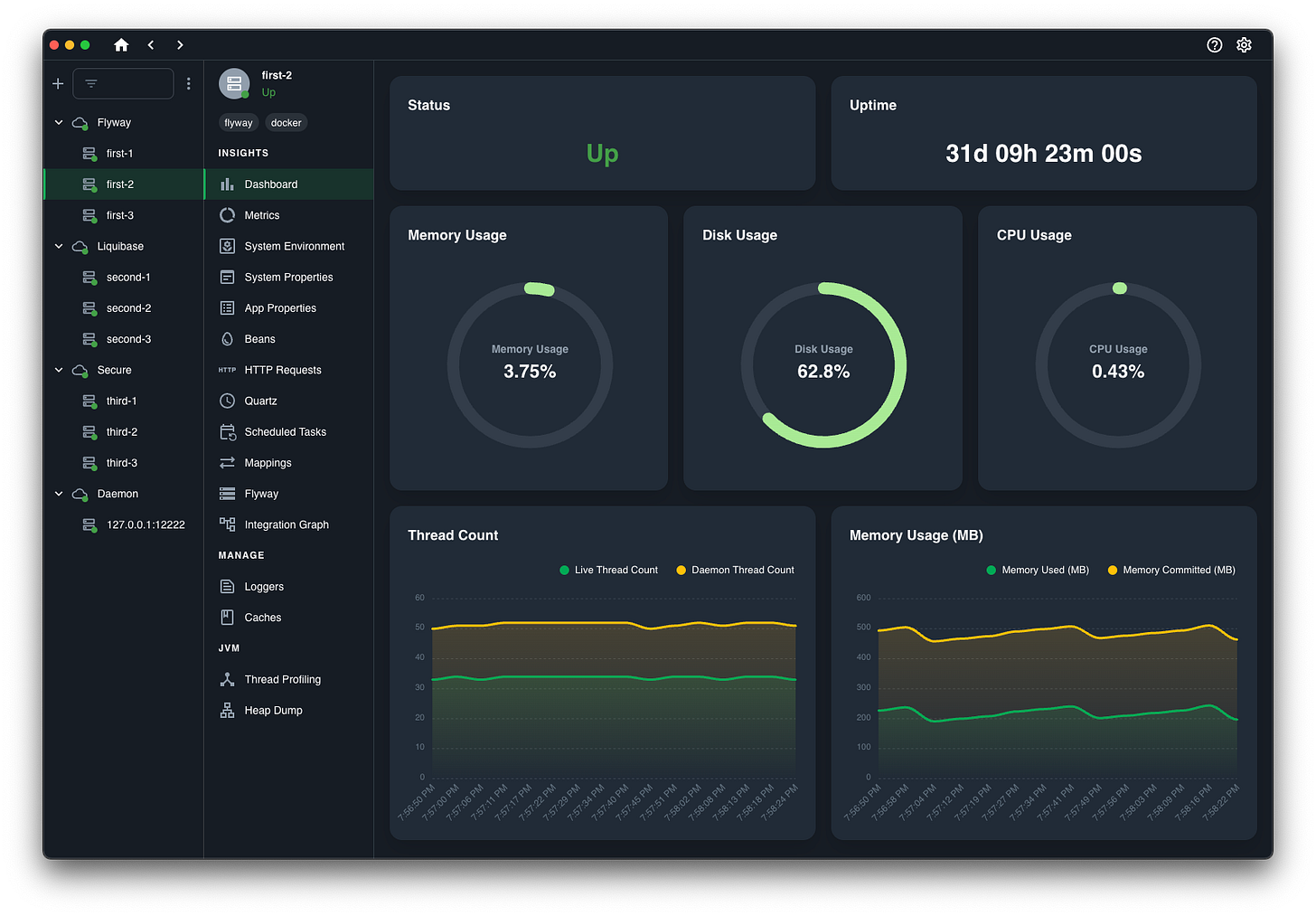 Ostara is a tool for managing and monitoring Spring microservices, which provides real-time key metrics such as CPU and memory usage, requiring only a running microservice instance with Actuator active. As a result, we get an admin panel, displaying all the parameters exposed by this API (and, as you check for yourself, there are quite a few). Ostara is easy to integrate with production-grade applications, flexible and has quite friendly documentation.