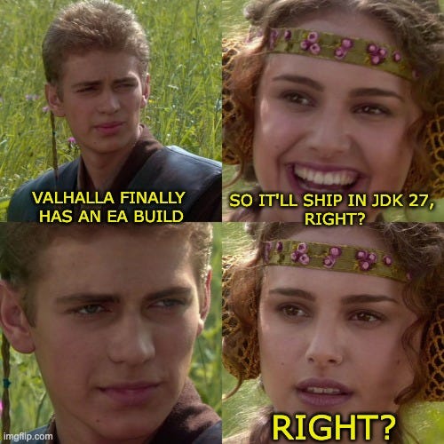 If I had to bet on which JEP will be the most important one in JDK 27, I’d go all in on JEP 401: Value Classes and Objects (Preview). Project Valhalla, after years of conceptual work and prototyping, has a real chance of debuting in preview in the mainline JDK.